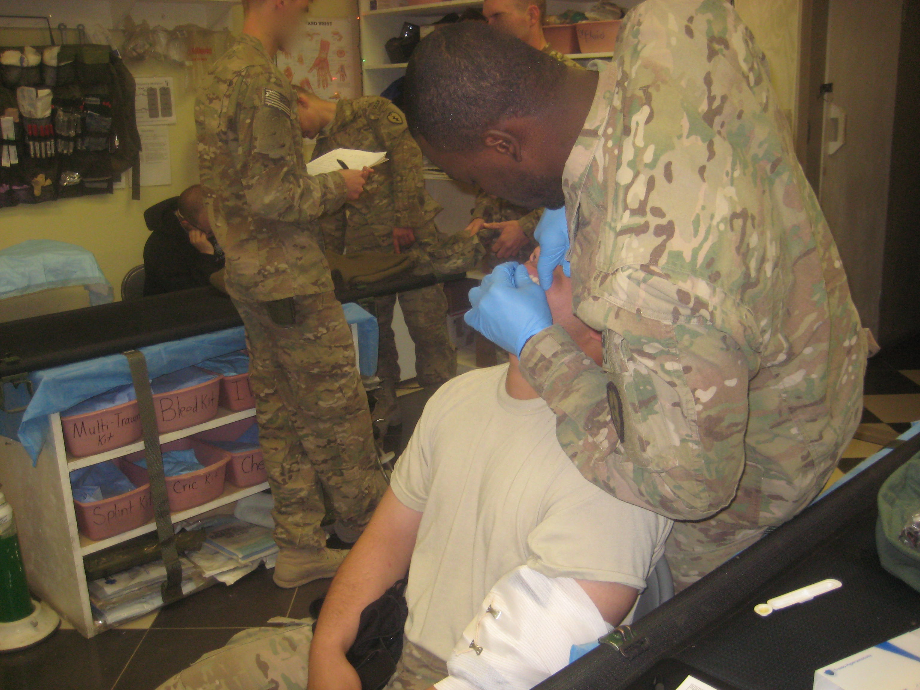 Sometime after lunch an alarm went off alerting everyone on the COP that there was a casualty on the base: someone had been shot. Everyone in the aid station started preparing to receive a wounded soldier. My assistant and I picked up our gear and moved it out of the way. The aid station was very small, only holding a couple of desks and two litters on litter stands. The last thing they needed was a bunch of fluoride varnish and dental supplies all over the place.