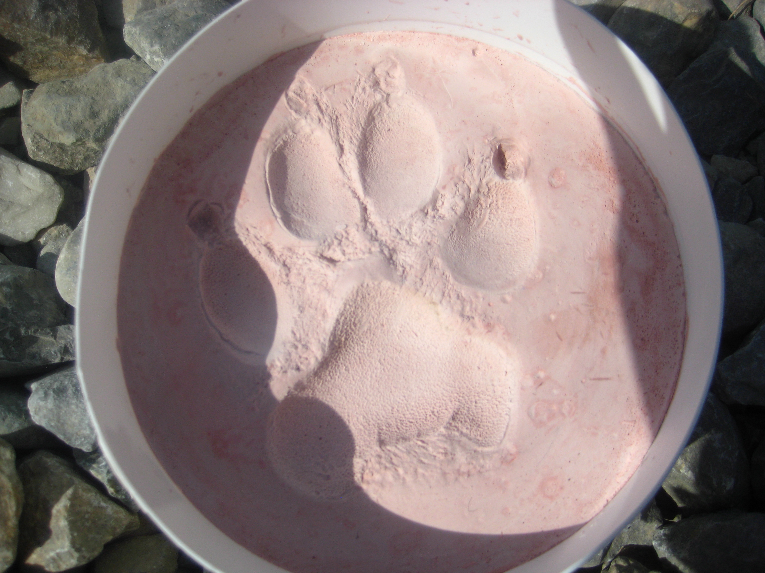My techs and I, along with the help of the veterinarian tech and the orthopedic surgeon (who just so happened to be there) mixed up some dental stone and made an impression of the animal’s left front paw. They wanted to give the handler a memento to remember his partner by. The young Sergeant was apparently very shook up. To him this dog was his partner, his battle buddy. His battle buddy had just died.